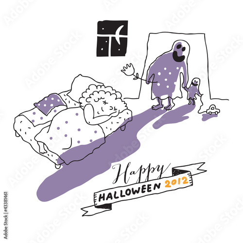 Вектор детских страхов. Маленький мальчик спит и видит кошмар, лежа на кровати под одеялом, иллюстрация. Плохие ночные сны, фобии и воображение детей