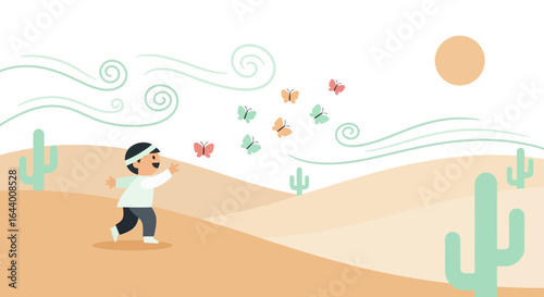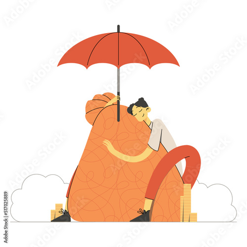 Вектор детских страхов. Иллюстрация маленькой девочки, кричащей от страха перед пауками. Ребенок, страдающий арахнофобией. Испуганные дети