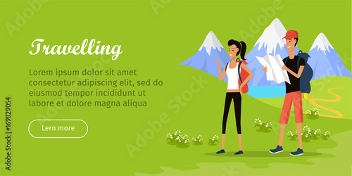 Векторная иллюстрация школьников мальчика и девочки, держащихся за руки. Элемент дизайна детской концепции в плоском стиле.