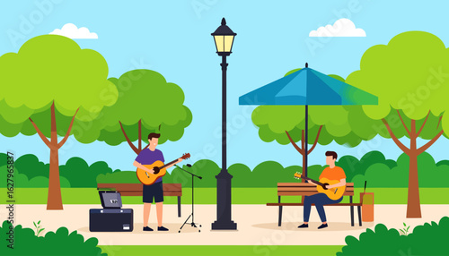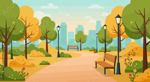 Дети движутся по уличной сцене. Векторный отец с ребенком, идущий по дорожному переходу. Городской фон
