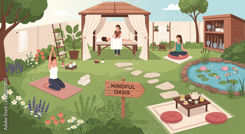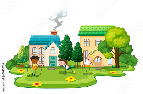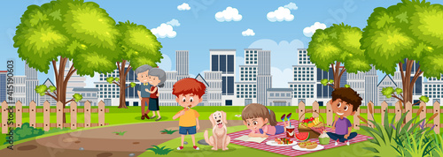 Дети и родители играют в прятки в саду векторная иллюстрация. Счастливая семья, проводящая время вместе, подглядывая, высматривая, обыскивая друг друга