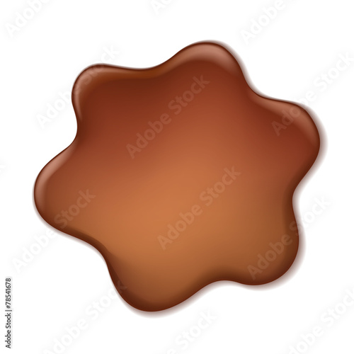 Значок шоколадного пятна. Вектор коричневых брызг. Выделены расплавленные жидкие сливки. Капля десерта, капля глазури на белом фоне.
