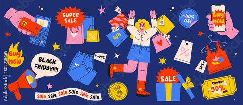 Рождественская и новогодняя открытка и фоновый шаблон. Зимний праздник векторная иллюстрация. 2021 новый год рисованный плакат. Елка и игрушки, люди, городские здания, снеговик.