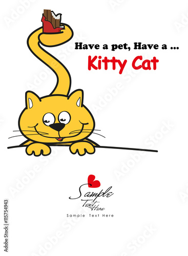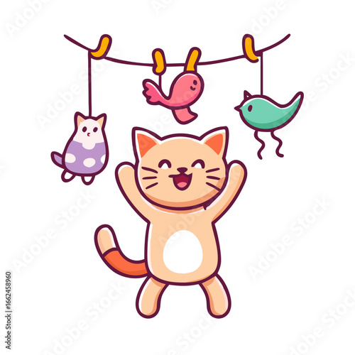 Рождественский кот в векторе. Милый зимний персонаж-питомец для дизайна праздничной открытки. Рождественский котенок с ягодами остролиста, украшенный омелой, на белом фоне