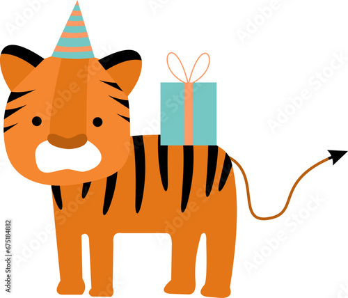 Персонаж рождественской коровы в теплом шарфе и большом количестве векторных иконок подарочной коробки, изолированных на белом фоне.