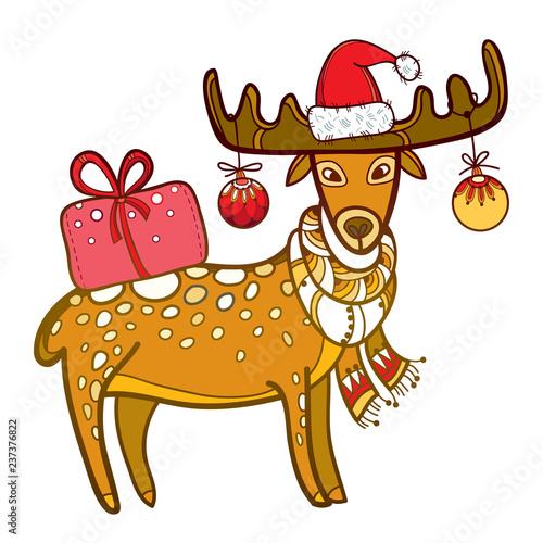 Рождественский персонаж-корова с венком из омелы на голове, векторный значок, изолированный на белом фоне.
