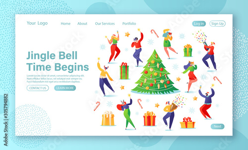Векторный шаблон веб-сайта рождественской вечеринки, дизайн веб-страницы и целевой страницы для разработки веб-сайтов и мобильных сайтов. Группа людей счастливая деловая команда празднует Рождество и Счастливый Новый год.