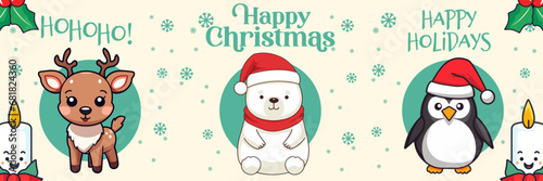 Векторная иконка с милым животным на рождественской открытке. Рождественская гирлянда с оленями. Дизайн открытки с приглашением на зимние праздники. Изолированный на белом фоне