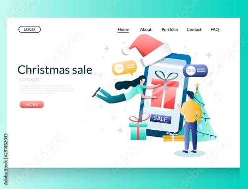 Векторный шаблон веб-сайта рождественской распродажи, дизайн веб-страницы и целевой страницы для разработки веб-сайтов и мобильных сайтов. Рождественская распродажа, специальное предложение, скидки.