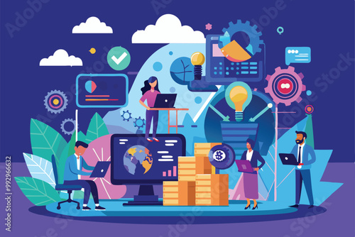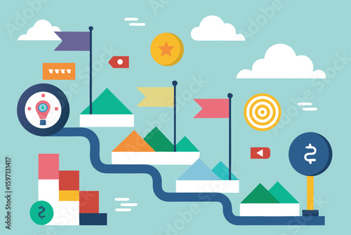 Векторная плоская иллюстрация киноиндустрии. Экран с кнопкой воспроизведения, видеокамера, билеты, глобус, попкорн, 3d-очки. Концепция кинематографии для веб баннера страницы веб сайта и т.д.