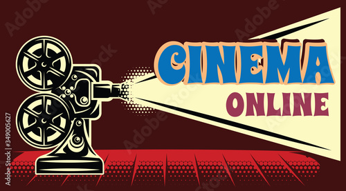Шаблон баннера ретро-плаката Cinema movie time. Векторная иллюстрация, вырезанная из бумаги.