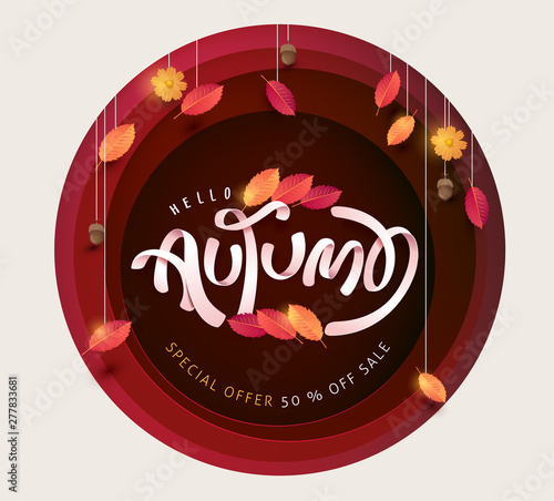 Шаблон дизайна баннера циркового плаката. Векторные вырезанные из бумаги украшения цирковой арены с воздушной акробатикой, фокусником, дрессированным слоном, шоу клоуна-жонглера в круговой рамке.