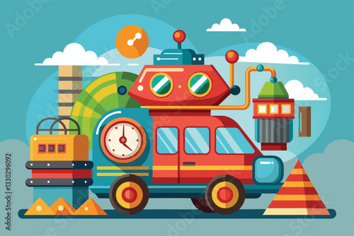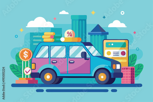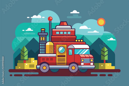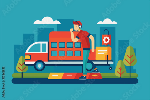 Векторная иллюстрация концепции городской набережной с кофейным велосипедом и грузовиком для мороженого, покупателями и продавцами мороженого, кофе в дорогу. Дизайн в плоском стиле.