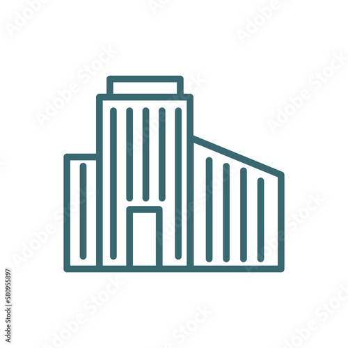 Значок города. Городской пейзаж на фоне векторного здания. Городской силуэт. Пейзаж делового города, выделенный на белом фоне