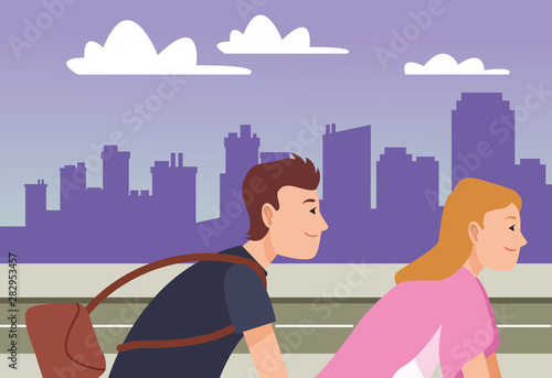 Мужские и женские персонажи, архитекторы или инженеры, строящие современную модель города, векторная плоская иллюстрация. Услуги инженера-строителя, городское планирование, концепция разработки веб-баннера, страницы веб-сайта