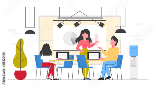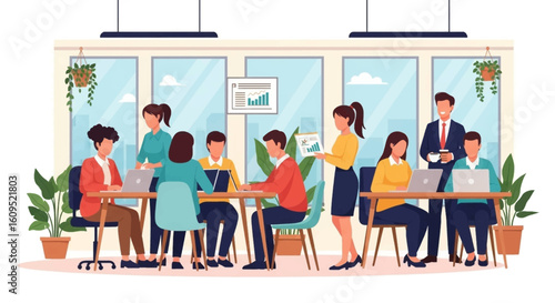 Городская улица с жилыми домами и магазинами, кафе на тротуаре, пекарня, кофейня, спа-салон с посетителями, покупателями, плоская векторная иллюстрация. Люди идут по городской торговой улице.