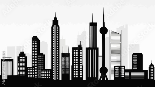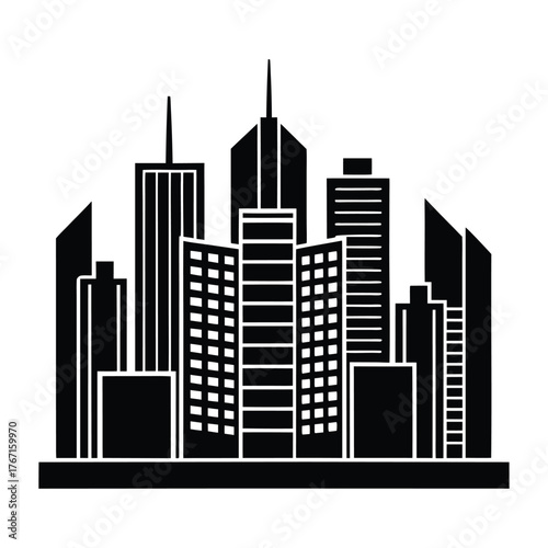Фон городского пейзажа с векторным значком силуэта здания, изолированным на белом фоне