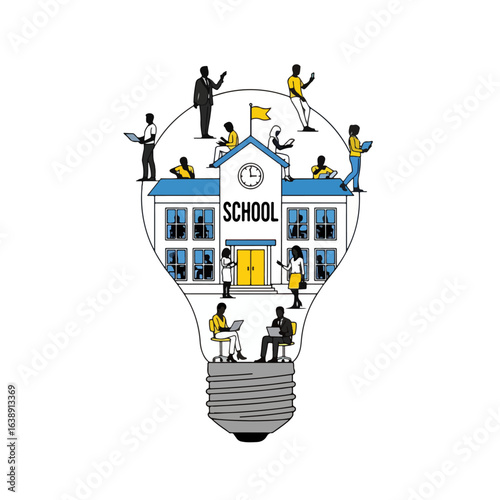 Иллюстрация векторной концепции экологически чистого мира. Чистый зеленый город, солнечные батареи, ветряные мельницы внутри лампочки, электромобиль. Люди, использующие зеленую альтернативную энергию. Экология, охрана окружающей среды.
