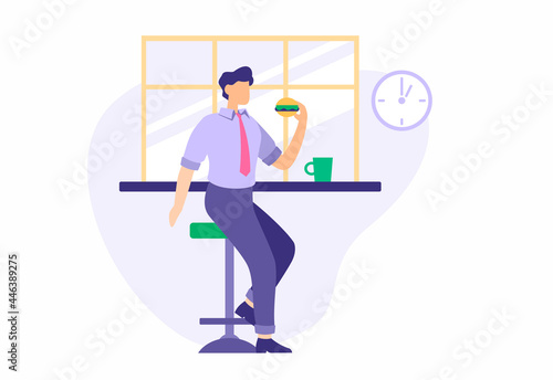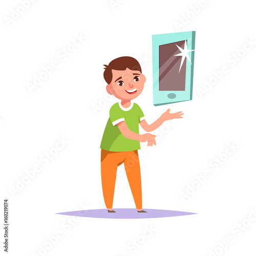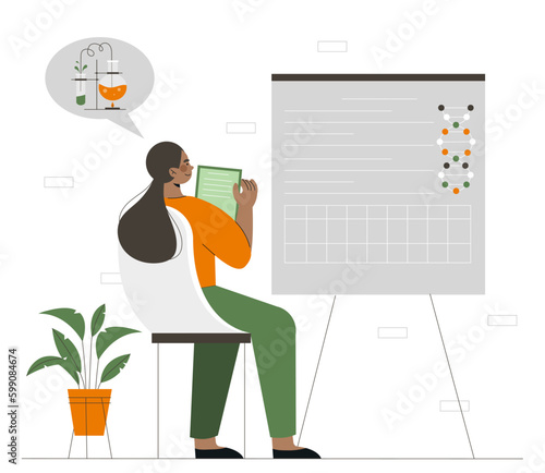 Уборщица персонала клининговой компании, уборщик с оборудованием для уборки дома, векторная плоская изолированная иллюстрация. Мытье окон, стирка, глажка, вытирание пыли, уборка пылесосом, вывоз мусора.