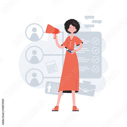 Векторная иллюстрация женщины, держащей костюм после глажки. Элемент дизайна в плоском стиле уборщиков, значок, выделенный на белом фоне.