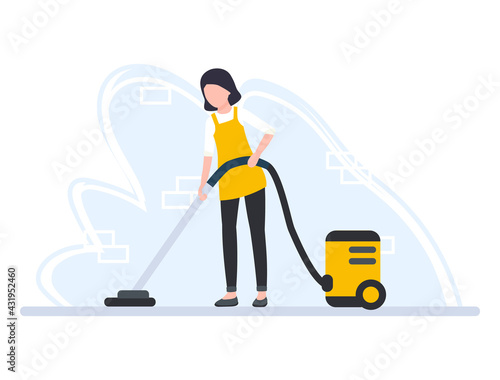 Векторная иллюстрация уборщицы с пылесосом. Элемент дизайна в плоском стиле уборщиков, значок, выделенный на белом фоне.