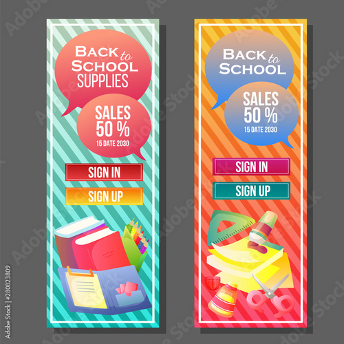 Вертикальный баннер, рекламирующий новые чистящие средства. Бутылки с ванной, душем, туалетом, средством для мытья окон и посуды, образец текста. Векторная иллюстрация в мультяшном стиле.