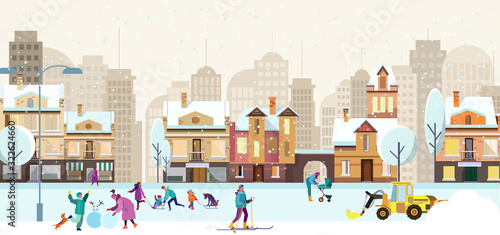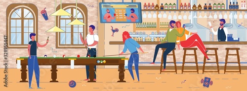 Векторный баннер концепции клининговой службы. Люди убирают дом. Интерьер гостиной квартиры. Команда горничной компании за работой.