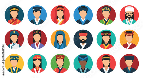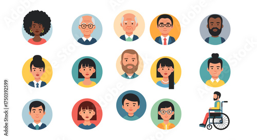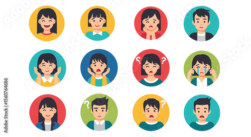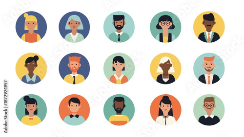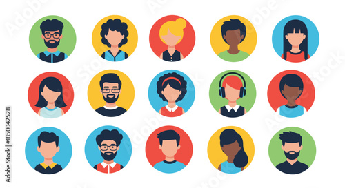 Векторная иллюстрация в круглой рамке с разными умными людьми. Набор аватаров умных студентов мужского и женского пола, выделенных на белом фоне. Коллекция иконок с портретами веселых парней и девушек