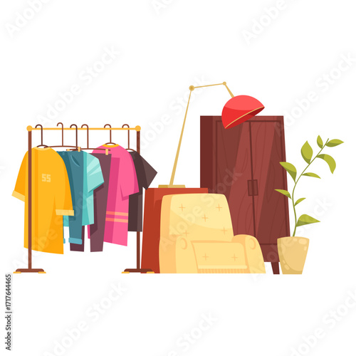 Векторная иконка гаражной распродажи одежды, изолированная на белом фоне