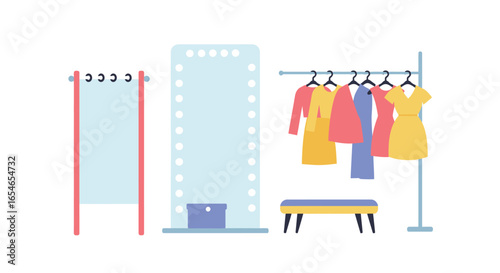 Вешалка для одежды, шкаф-стойка с векторным значком вешалки, выделенным на белом фоне. Магазин модной одежды Shop