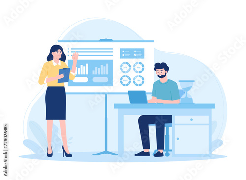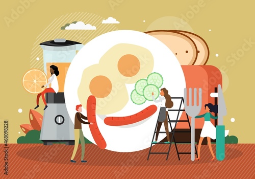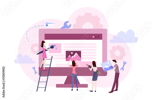 Векторная иллюстрация дизайна в плоском стиле концепции технологии облачных вычислений. Огромное облако и ноутбук, микро-женские персонажи с планшетом, увеличительное стекло. Хранение данных.