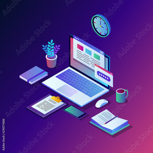 Облачный криптовалютный кошелек, плоская векторная иллюстрация. Изометрическое биткойн-облако подключено к мобильным телефонам, ноутбукам и настольным компьютерам. Хранилище цифровых денег, онлайн-кошелек для крипто-монет.