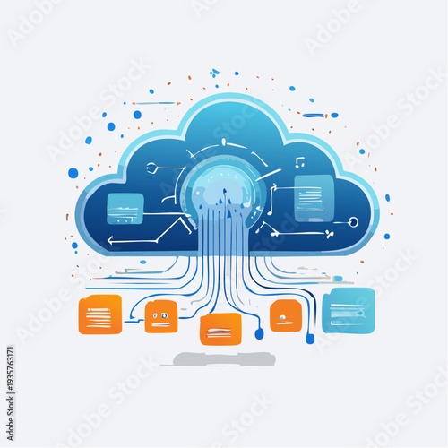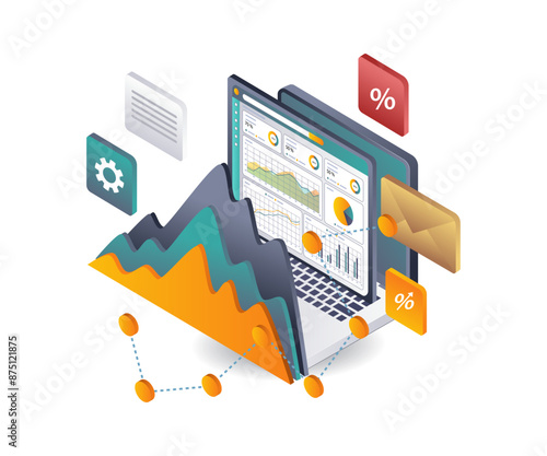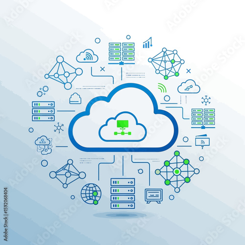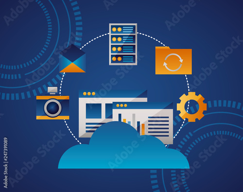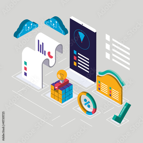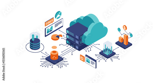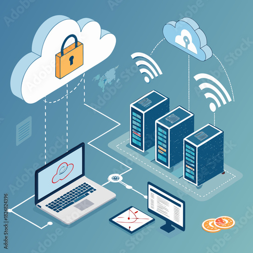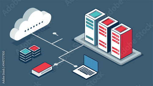 Облачный хостинг для виртуального хранения данных - изометрическая векторная иллюстрация. Оборудование для резервного копирования бизнес-баз данных и надежной защиты