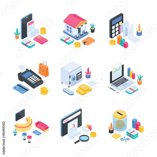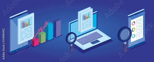 Блок-схема сети передачи данных. Векторная плоская 3d изометрическая иллюстрация сетевых серверов, интернет-маршрутизатора, ноутбука, мобильного телефона.