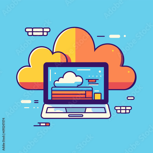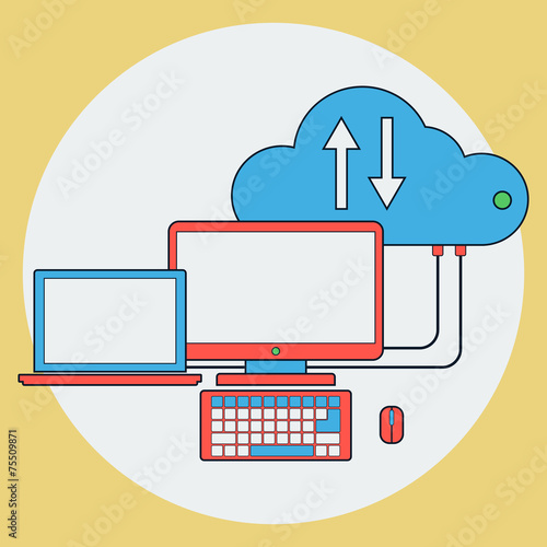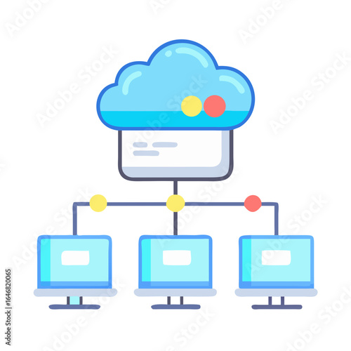 Загрузка данных из облачного хранилища с изометрической 3d векторной иллюстрацией. Цифровой сервис или приложение с передачей личной базы данных. Технология онлайн-вычислений. Сеть подключения серверов и центров обработки данных