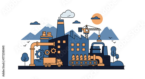 Набор для добычи угля. Векторная плоская иллюстрация. Значки горнодобывающей промышленности с машинами, оборудованием и курительными трубками промышленных предприятий. Добыча и транспортировка угля.
