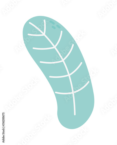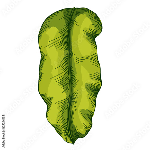 Векторная иконка листьев кокосовой пальмы. Иллюстрация экзотической ветви в виде одного мультфильма. Часть тропической пальмы, выделенная на белом фоне. Символ зеленого кокосового ореха или бананового листа. Элемент дизайна листьев джунглей