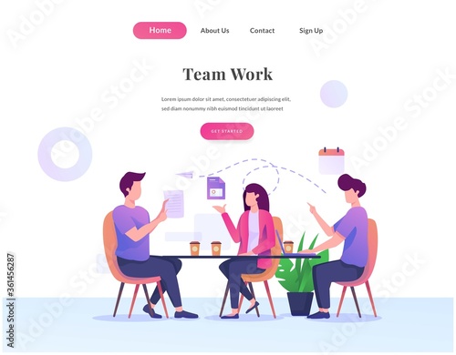 Кофе-брейк в офисе. Люди пьют кофе рядом с офисным холодильником. Деловая встреча в обеденное время. Векторный шаблон дизайна веб-сайта. Иллюстрация концепции сайта целевой страницы.