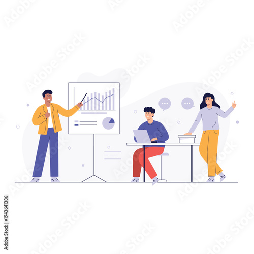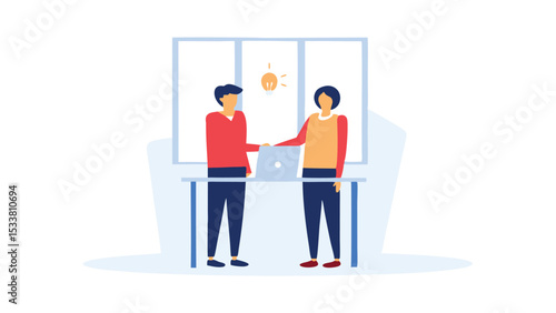 Перерыв на кофе, векторная иллюстрация дизайна в плоском стиле. Деловые люди мужчина и женщина пьют кофе, разговаривая друг с другом. Концепция офисной ситуации для веб-баннера, страницы веб-сайта и т.д.