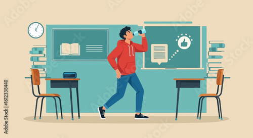 Векторная иллюстрация человека, указывающего на меню. Кофейня, кафе, элемент концептуального дизайна магазина в плоском стиле.