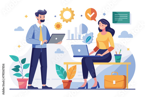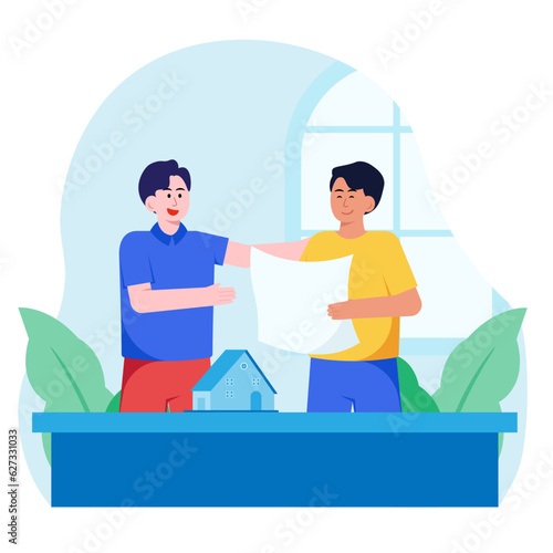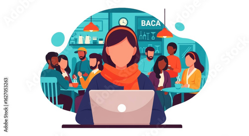Векторная иллюстрация концепции кофейни. Счастливая пара, сидящая за столом и пьющая кофе, элемент дизайна в плоском стиле.