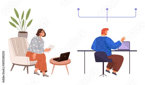 Векторная иллюстрация пары, сидящей за столом и пьющей кофе. Элемент дизайна в плоском стиле Coffee house people, значок, выделенный на белом фоне.