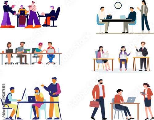 Счастливые люди, пары персонажей мужского и женского пола, друзья, сидящие за столами, пьющие кофе, разговаривающие друг с другом в кафе, векторная плоская изолированная иллюстрация. Кофейня, бар, посетители кофейни.