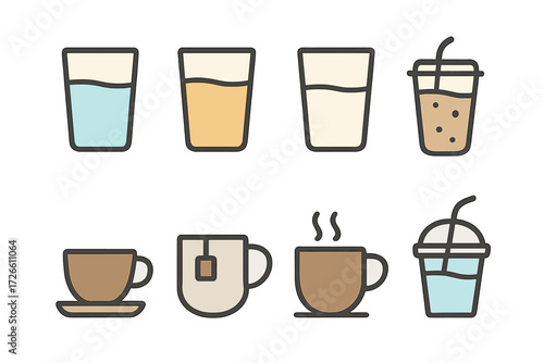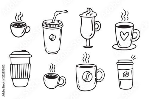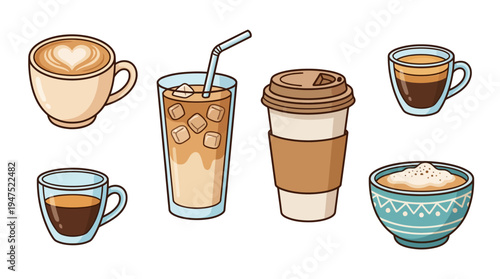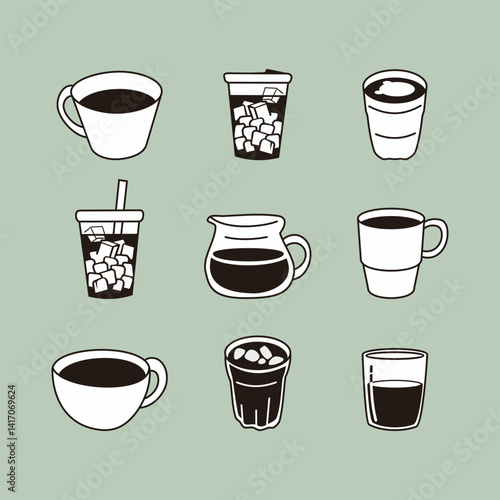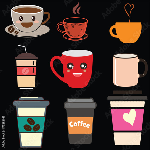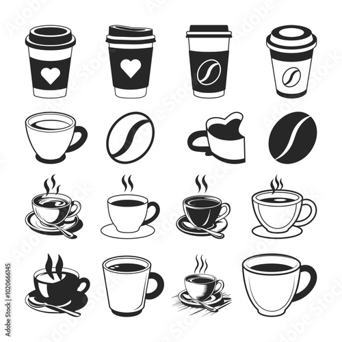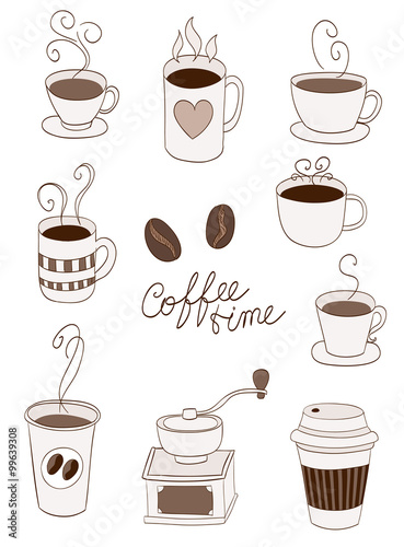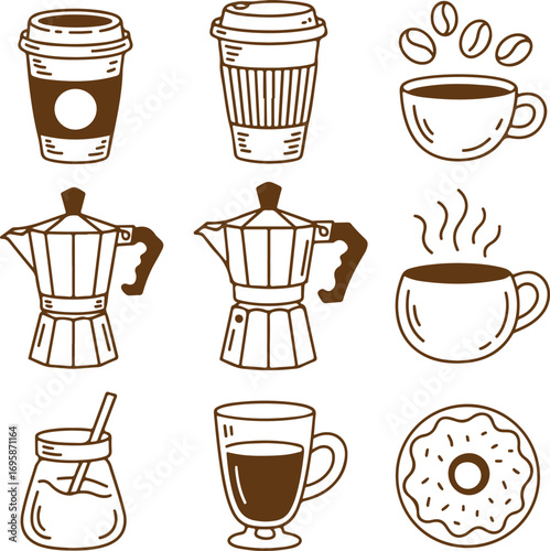Набор кофейных иконок. Кнопки для Интернета и приложений. Векторная иллюстрация