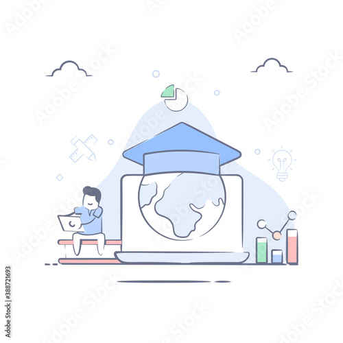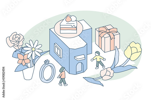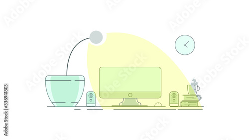 Векторная плоская иллюстрация производства кофе. Кастрюля для турецкой джезвы, мясорубка, чашка горячего бодрящего напитка, чайник, пакет для упаковки пищевых продуктов, гибкая стоячая сумка на молнии. Кофейный плакат, баннер.