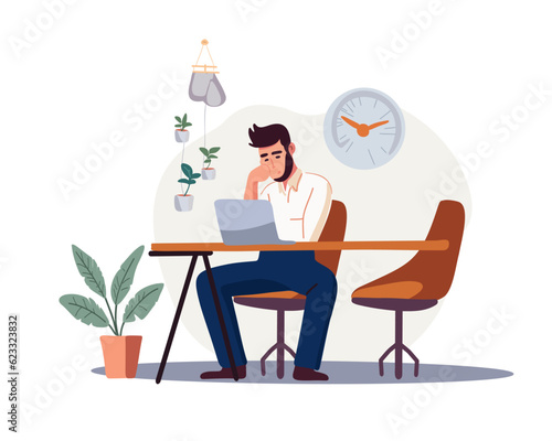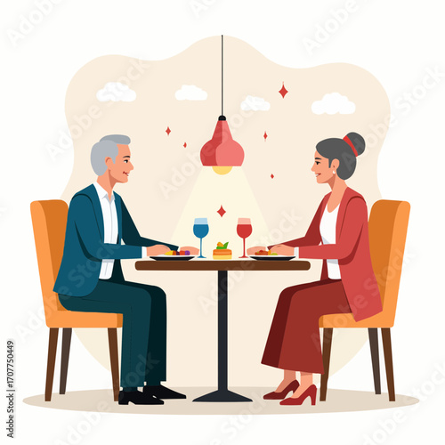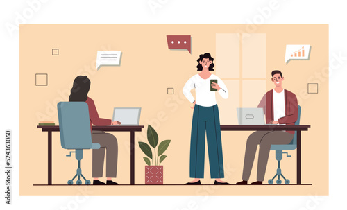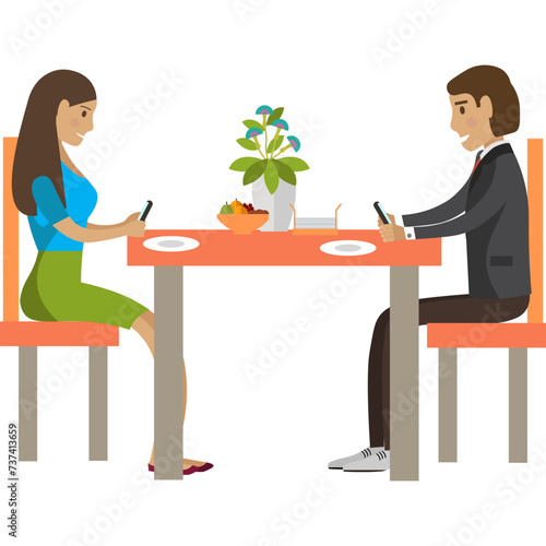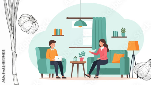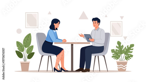Сцена в кофейне. Счастливые мужчина и женщина пьют кофе, разговаривают друг с другом, сидя за барной стойкой, плоская векторная иллюстрация. Встреча друзей молодых людей. Кофейня, интерьер кафе.