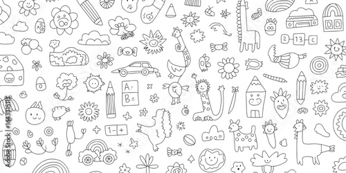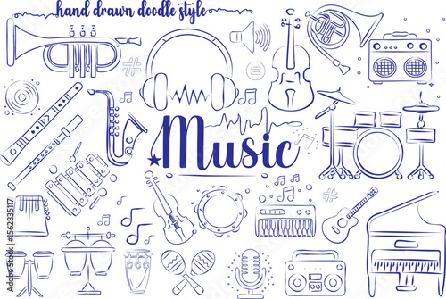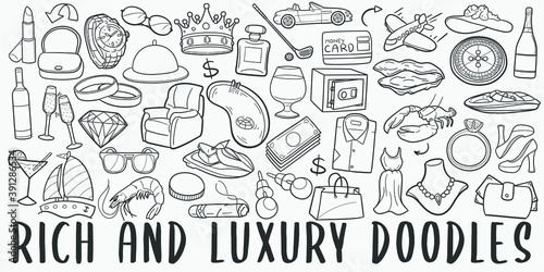 Реалистичный вид сверху чашка кофе на фоне нарисованных от руки символов бизнеса и финансов, векторная иллюстрация. Шаблон дизайна плаката "Время кофе".