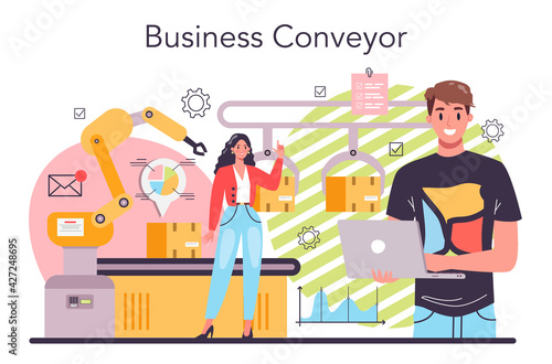 Крошечные персонажи команды бариста готовят кофе с помощью большой ручной кофемолки, векторная иллюстрация. Кофейня, кофейня, профессиональная обучающая композиция для бармена для веб-баннера, страницы веб-сайта и т.д.