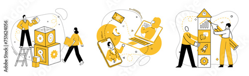 Люди, делающие холодный кофе с кубиками льда в бутылке, векторная иллюстрация. Альтернативная концепция ручного приготовления кофе для веб-баннера, страницы веб-сайта и т.д.