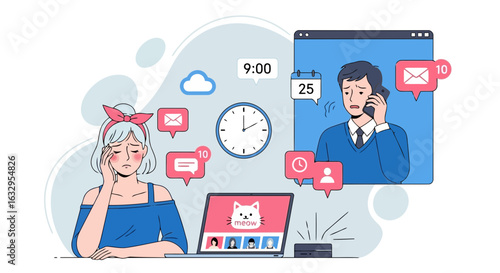 Холодный звонок по телефону для потенциального клиента мужского пола векторная иллюстрация. Рассылка спама, реклама и маркетинговое продвижение. Продавцы связываются с раздраженным клиентом, предлагая бесполезный товар или услугу